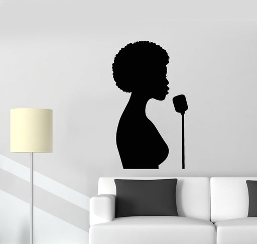 Vinyl Wall Decal African Woman Singer Microphone Karaoke Club Stickers (2463ig)