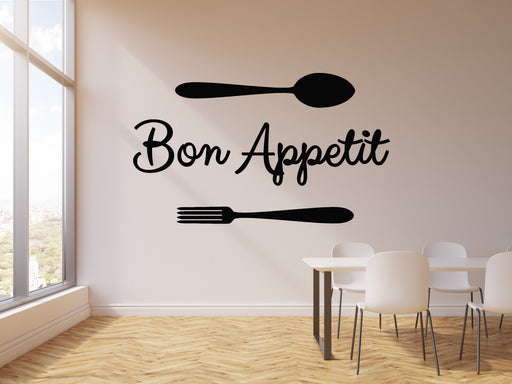 Vinyl Wall Decal Bon Appetit Words Fork Spoon Dining Phrase Stickers Mural (g7995)