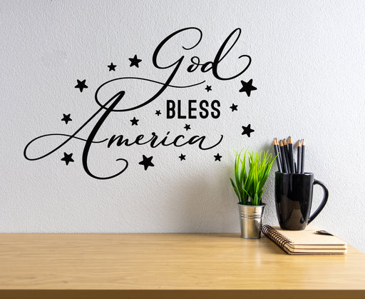 Vinyl Wall Decal God Bless America Patriotic Phrase Living Room Stickers Mural (g6556)
