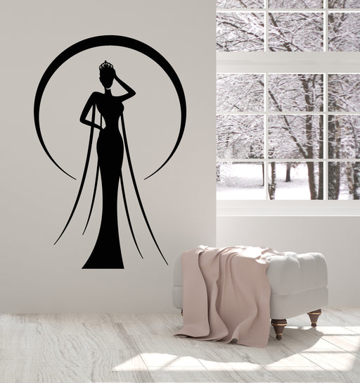 Vinyl Wall Decal Miss Beauty Crown Lady In Evening Dress Stickers Mural (g619)