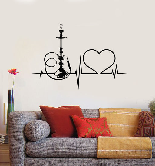 Vinyl Wall Decal Shisha Love Hookah Smoke Arabic Cafe Cardiogram Stickers Mural (g7231)