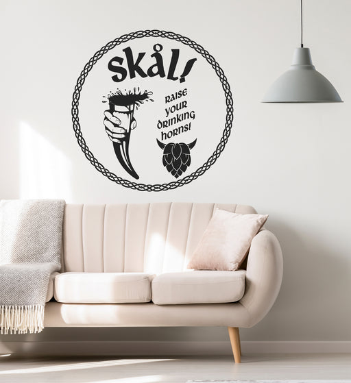 Vinyl Wall Decal Skal Viking Drinking Horn Scandinavian Room Decoration Stickers Mural (ig6315)