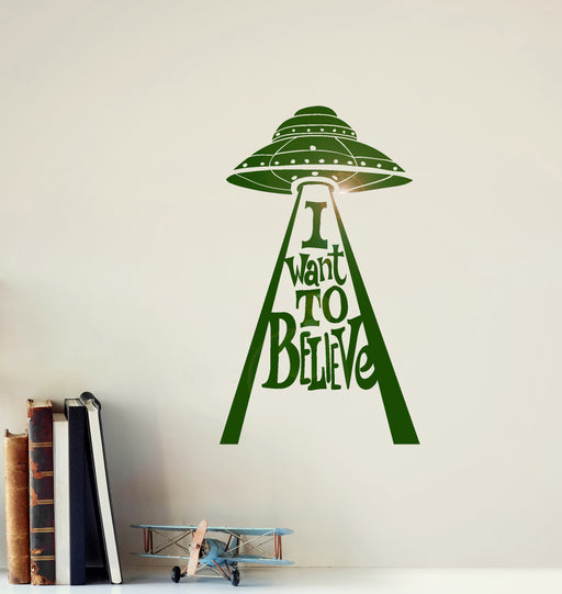 Vinyl Wall Decal UFO Alien Ship Flying Saucer Logo I Want To Believe Stickers (3094ig)