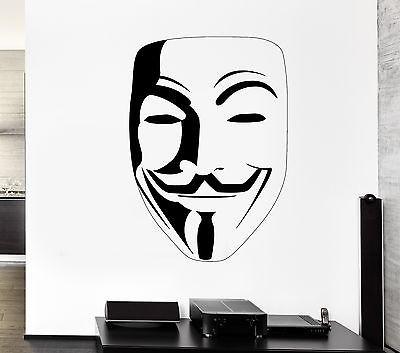 Wall Decal Guy Fawkes Vendetta Mask Revenge Mural Vinyl Stickers Unique Gift (ed049)