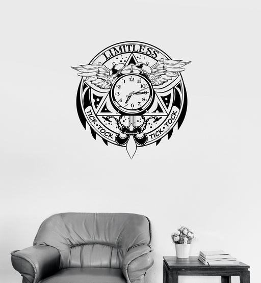 Wall Decal Limitless Clock Time Flying Wings Symbols Vinyl Sticker Unique Gift (ed589)