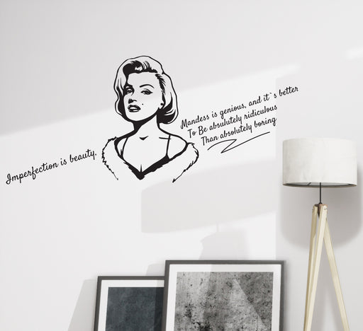 Wall Decal Marilyn Monroe Quote Imperfection Is Beauty Madness Vinyl Decor Black 28.5 in x 12.5 in gz363