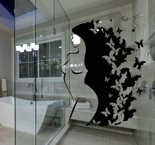 Window and Glass Vinyl Decal Naked Abstract Girl Long Hair Butterfly Art Decor Stickers Unique Gift (2043igw)