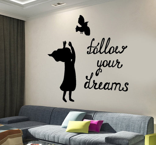 Wall Vinyl Decal Quote Follow Your Dreams Birds Home Interior Words Unique Gift z4296