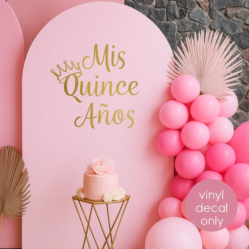Quinceañera Birthday Party Decor Mis Quince Años Vinyl Decal – Gold Princess Crown Backdrop Sticker (4647ig)