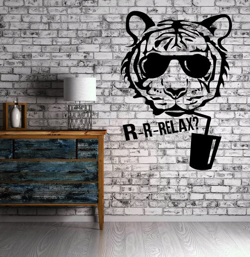 Wall Sticker Vinyl Decal Tiger Relax Bar Night Club Animal Cocktail Unique Gift (ig2075)
