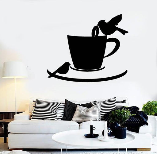 Vinyl Decal Coffee Cup Birds Cafe Kitchen Decor Wall Stickers Mural Unique Gift (ig2725)