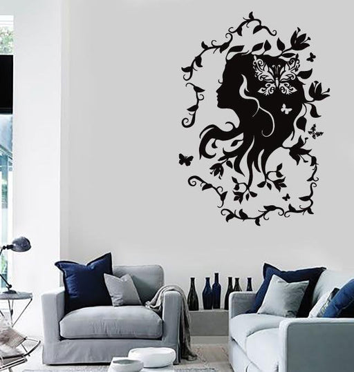 Wall Sticker Vinyl Decal Beautiful Woman with Flower Silhouette Unique Gift ig1297