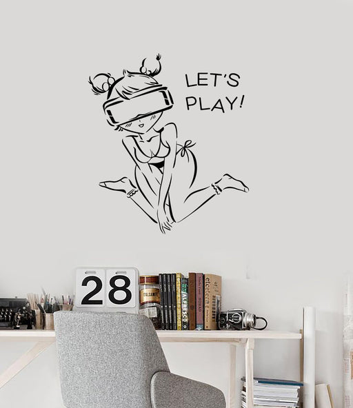 Vinyl Wall Decal Sexy Gamer Girl VR Headset Virtual Reality Decor Stickers Mural (ig5663)