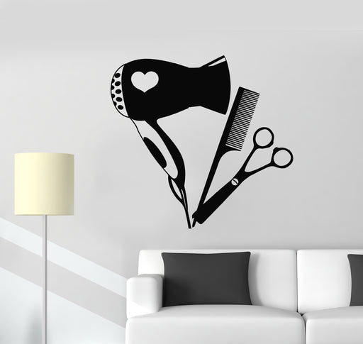Vinyl Wall Decal Scissors Hair Dryer Comb Hair Tools Beauty Studio Stickers Mural (g1312)