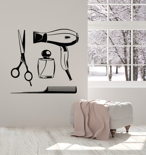 Vinyl Wall Decal Beauty Hair Tools Hairdryer Comb Scissors Barbershop Stickers Mural (g1299)