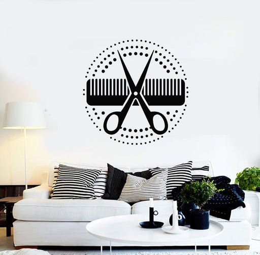 Vinyl Wall Decal Circle Comb Scissors Hair Tools Beauty Salon Stickers Mural (g1328)