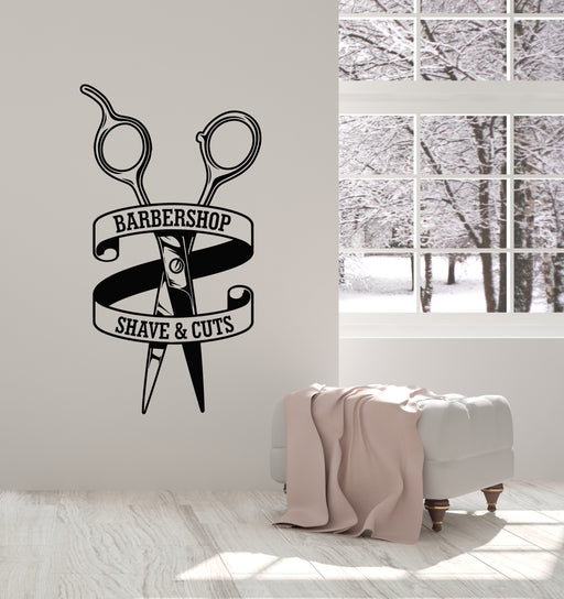 Vinyl Wall Decal Scissors Barbershop Shave And Cuts Men's Style Stickers Mural (g1347)