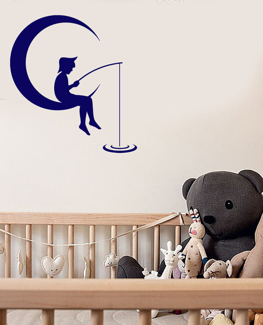 Vinyl Wall Decal Cartoon Boy On The Moon Crescent Fishes Stickers (3011ig)