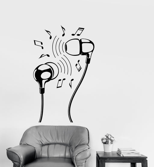 Vinyl Wall Decal Headphones Music Lover Notes Earphones Stickers (2856ig)