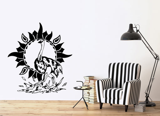 Vinyl Wall Sticker Decal Totem Bird Ostrich with Sun Oval Ftame Unique Gift (n1179)