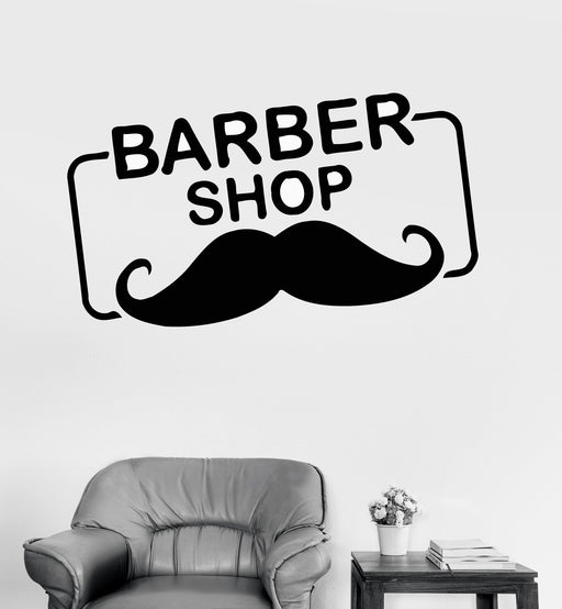 Vinyl Wall Decal Barber Shop Logo Mustache Hair Salon Stickers Unique Gift (ig4223)