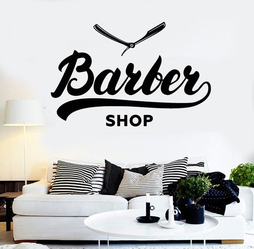 Vinyl Wall Decal Barbershop Word Hair Salon Straight Razor Stickers Unique Gift (ig4196)