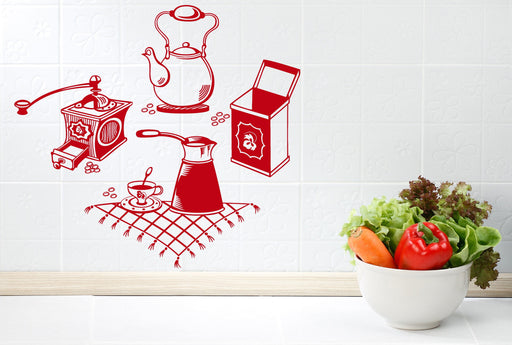 Wall Vinyl Decal Coffee Grinder Maker Tea Maker Kitchen Interior Decor Unique Gift z4665