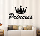 Vinyl Wall Decal Princess Word Crown Nursery Decor For Girls Rooms Stickers Unique Gift (1101ig)