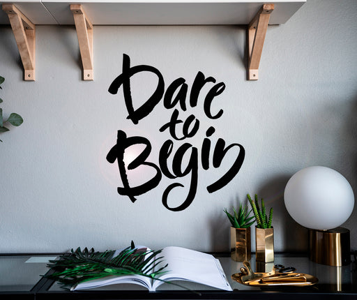Vinyl Wall Decal Dare To Begin Letter Motivation Words Stickers Mural 22.5 in x 20 in gz077