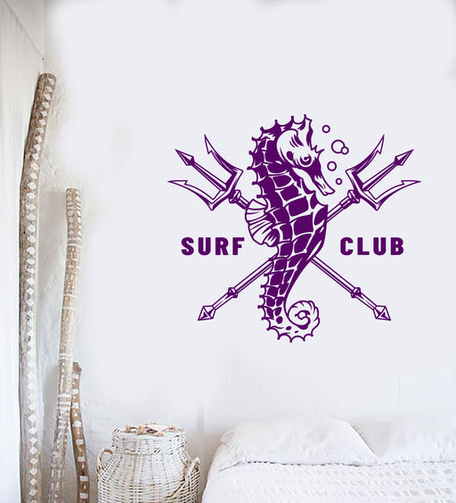 Vinyl Wall Decal Surfing Club Logo Sea Horse Water Sports For Surfer Stickers (3836ig)