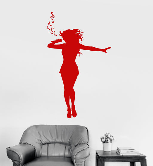 Vinyl Wall Decal Karaoke Club Singer Girl Music Microphone Stickers Unique Gift (1726ig)