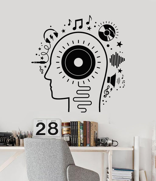 Vinyl Wall Decal Head Music Lover Headphones Melody Stickers Unique Gift (1512ig)