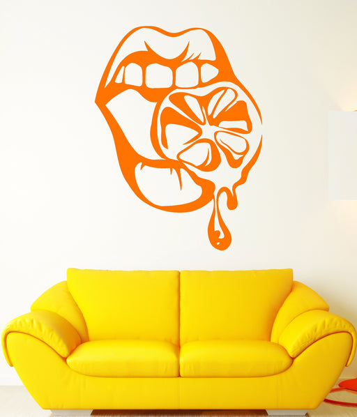 Vinyl Wall Decal Sexy Girl Lips Lemon Orange Cool Stickers Unique Gift (1614ig)
