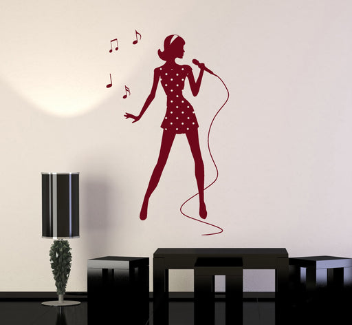 Vinyl Wall Decal Karaoke Singer Woman Music Notes Musical Stickers Unique Gift (ig4902)