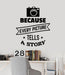 Vinyl Wall Decal Photo Phrase Because Every Picture Tells A Story Stickers Mural (g5929)