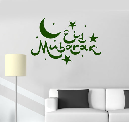 Vinyl Wall Decal Eid Mubarak Lettering Muslim Arabic Art Islam Crescent Stars Stickers Mural (ig5430)
