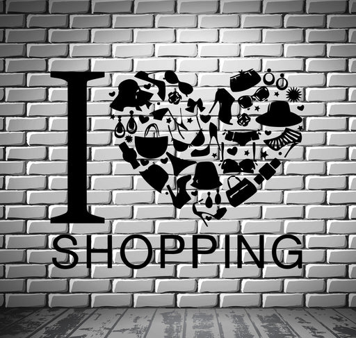 I Love Heart Shopping Shoes Fashion Wall Decor Mural Vinyl Art Sticker Unique Gift M519