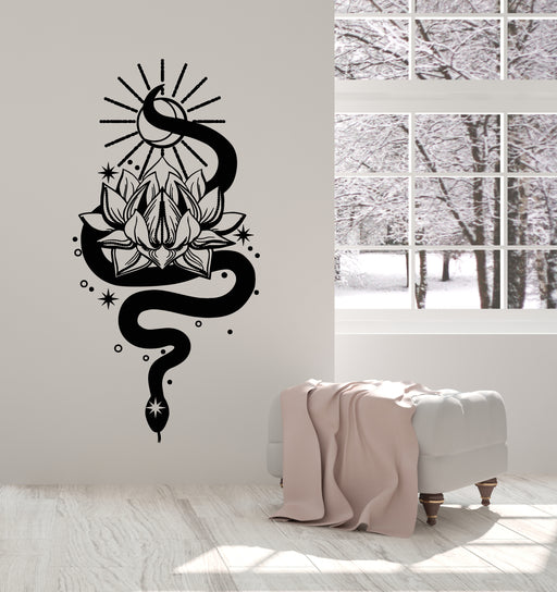 Vinyl Wall Decal Lotus Snake Darkness Light Symbol Sun Stars Stickers Mural (g2832)