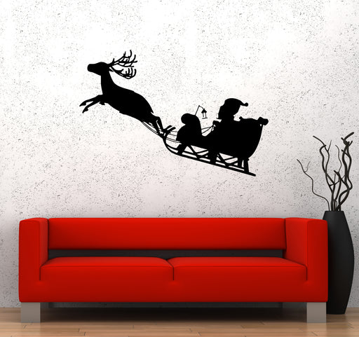 Wall Decal Santa Claus New Year Christmas Sleigh Reindeer Vinyl Sticker (ed1766)