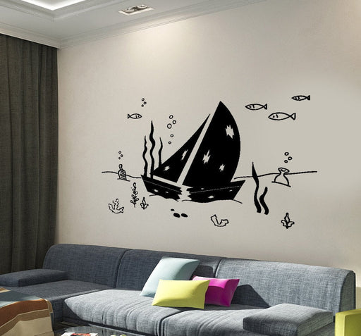 Wall Decal Undersea Ship Fish Seaweed Ocean Marine Decor Unique Gift z3986