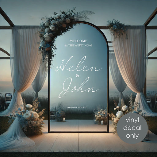 Absolutely! Every wedding decal is fully customizable. Personalize text with your names, wedding date, or any special message. Choose colors to match your wedding theme and venue décor, select fonts from our extensive library, or request custom typography. Size adjustments within our range are free of charge.