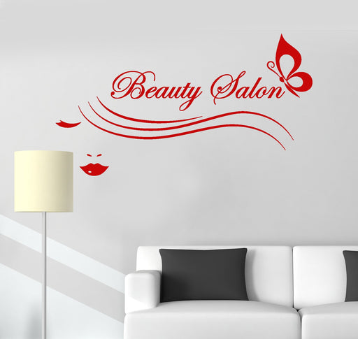 Autocollant mural en vinyle avec logo de salon de beauté, maquillage, visage, lèvres, cils (3229ig)