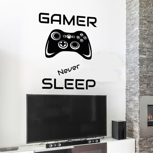 Autocollant mural en vinyle Gamer Never Sleep Jeu vidéo Jouer aux garçons Chambre Stickers muraux 35 po x 18 po gz245