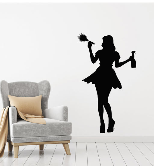 Autocollant mural en vinyle pour fille, femme de ménage, service de nettoyage, autocollants muraux (g5725)