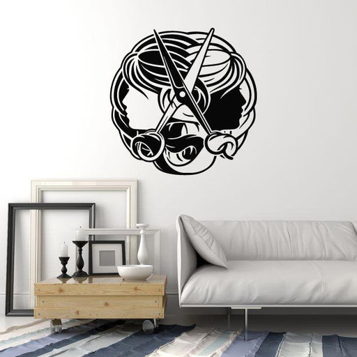 Autocollant mural en vinyle pour salon de coiffure, signe de coiffeur, ciseaux, cadeau unique (1203ig)