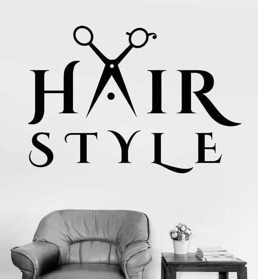 Autocollant mural en vinyle Ciseaux à cheveux Outils de coiffeur Autocollants de salon de beauté Cadeau unique (ig3339)