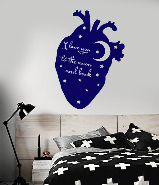 Autocollant mural en vinyle avec citation d'amour et de romance en forme de cœur, vers la lune et retour (2397ig)