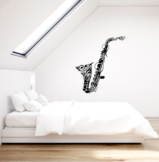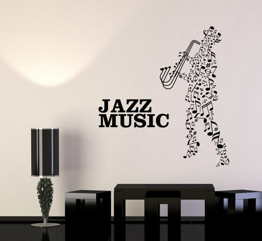 Autocollant mural en vinyle Notes de musique de jazz Musicien Joueur de saxophone Autocollants (4077ig)
