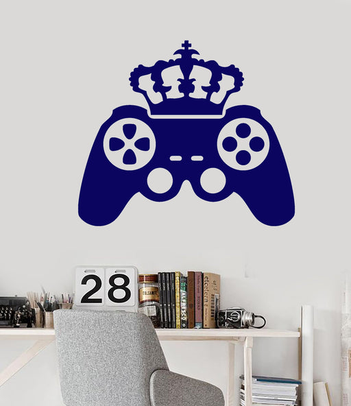 Autocollant mural en vinyle pour salle de jeux vidéo avec joystick et couronne (2237ig)