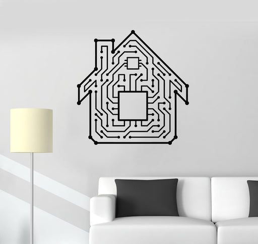 Autocollant mural en vinyle pour maison intelligente, puce de maison, technologie, geek, art, autocollants muraux (ig5370)